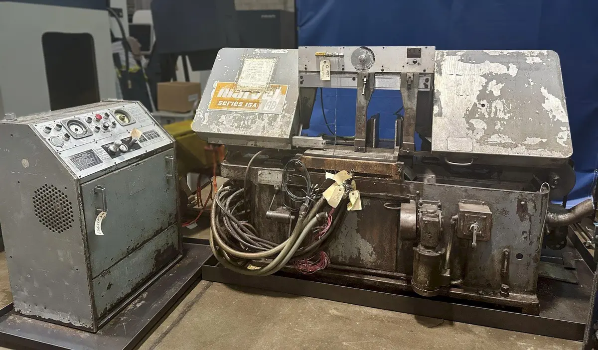 MARVEL 15A HORIZONTAL BANDSAW, Automatic Stock Infeed (2) Vises, 15" x 20" Capacity, 5 HP Drive Motor, 55-400 FPM, Coolant System, New 1981.