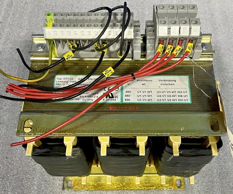 7 kVA SBA ISOLATION TRANSFORMER, Model DTT-UL 224-0830, 460/480/500 V Primary to 208 V Secondary, 60 Hz.