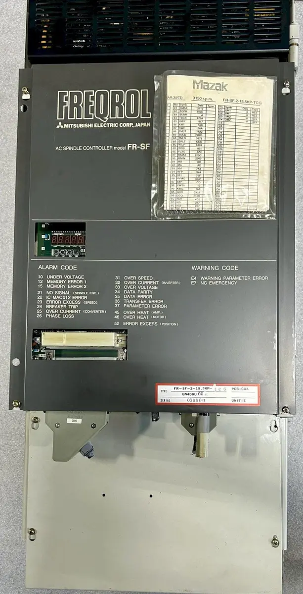 MITSUBISHI FREQROL AC SPINDLE CONTROLLER, Model FR-SF-2-18.5KP, with Yamabishi SF-PW Power Supply