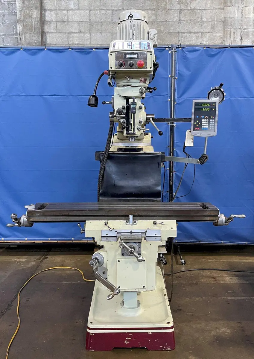 ACER eMill 3VKH VERTICAL MILL, 2-Axis Newall C-80 DRO, 10" x 50" Table, 3 HP Motor, 4500 RPM, New 2004.