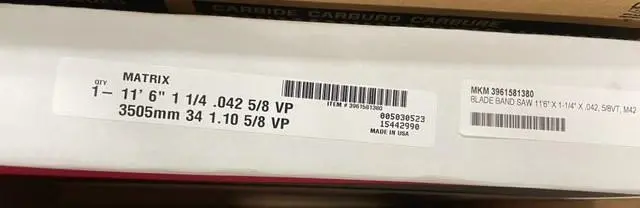 MORSE INDUSTRIAL BAND SAW BLADE, MKM3961581380, 11'6", 1-1/4" X .042", 5/8VT, M42