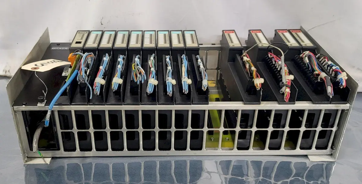CINCINNATI MILACRON I/O 16 SLOT RACK 3-424-1849A REV E 3-531-3849A #07C41PR4, with (8) DCI, (1) NIBA, (4) ACO CARDS