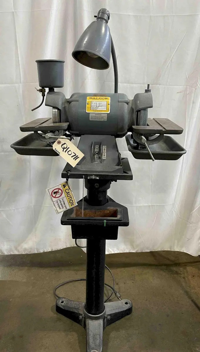 Cast Iron Pedestal Base with Quench Tank, 6" Diamond Wheel One Side, Tilt Work Tables with Clamps, Work Light