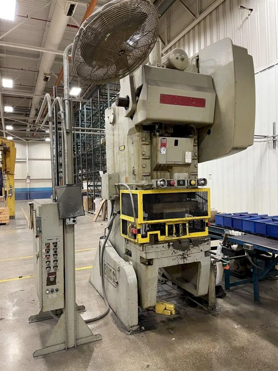 75 TON BLISS C-75 OBI PRESS, Back Geared, Dual Palm Buttons, 24" x 18" Ram, 36" x 24" Bolster/Bed, 4" Stroke, 3.5" Slide ADJ, 17" Shut Height, 45 SPM, Air Clutch & Brake and Dual Air Counterbalance.