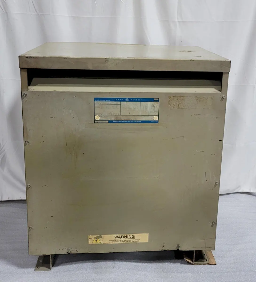 63 KVA GENERAL ELECTRIC TRANSFORMER, Model 9T2301130, 3-Phase, 460 Volt Input Delta, 509 Volt Output Line to Line Y, 294 Volt Line to Ground, Multi Tap.
