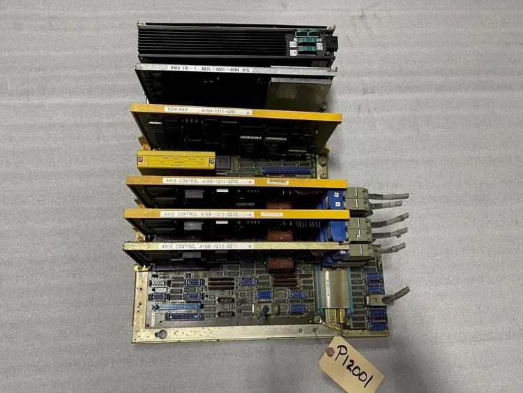 FANUC Operator Interface Control A16B-2200-0661, A16B-1210-0560 Power Supply, A16B-1211-0271 AXIS CTL, (2) A16B-1211-0270 AXIS CTL, A16B-1211-0291 ROM RAM, BMU 1M A87L-0001-0084 072