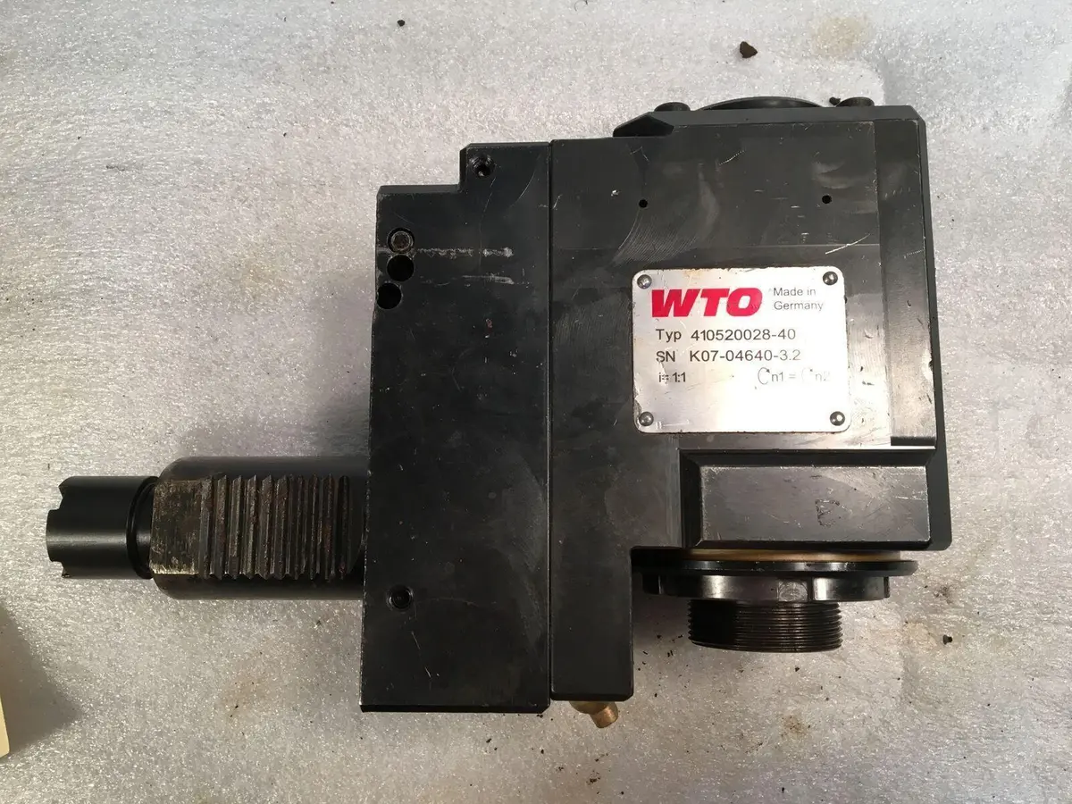 WTO Right Angle Live Toolholder, Type: 410520028-40, S/N: K07-04640-3.2; Came out of Okuma LB-15M CNC Lathe, Needs rebuilding but is not locked up.