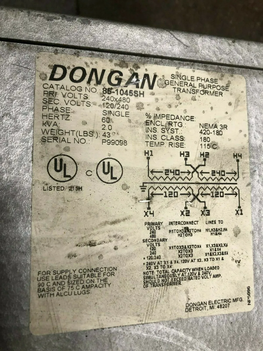 Dongan Single Phase General Purpose Transformer 2.0 KVA Cat# 85-1035SH