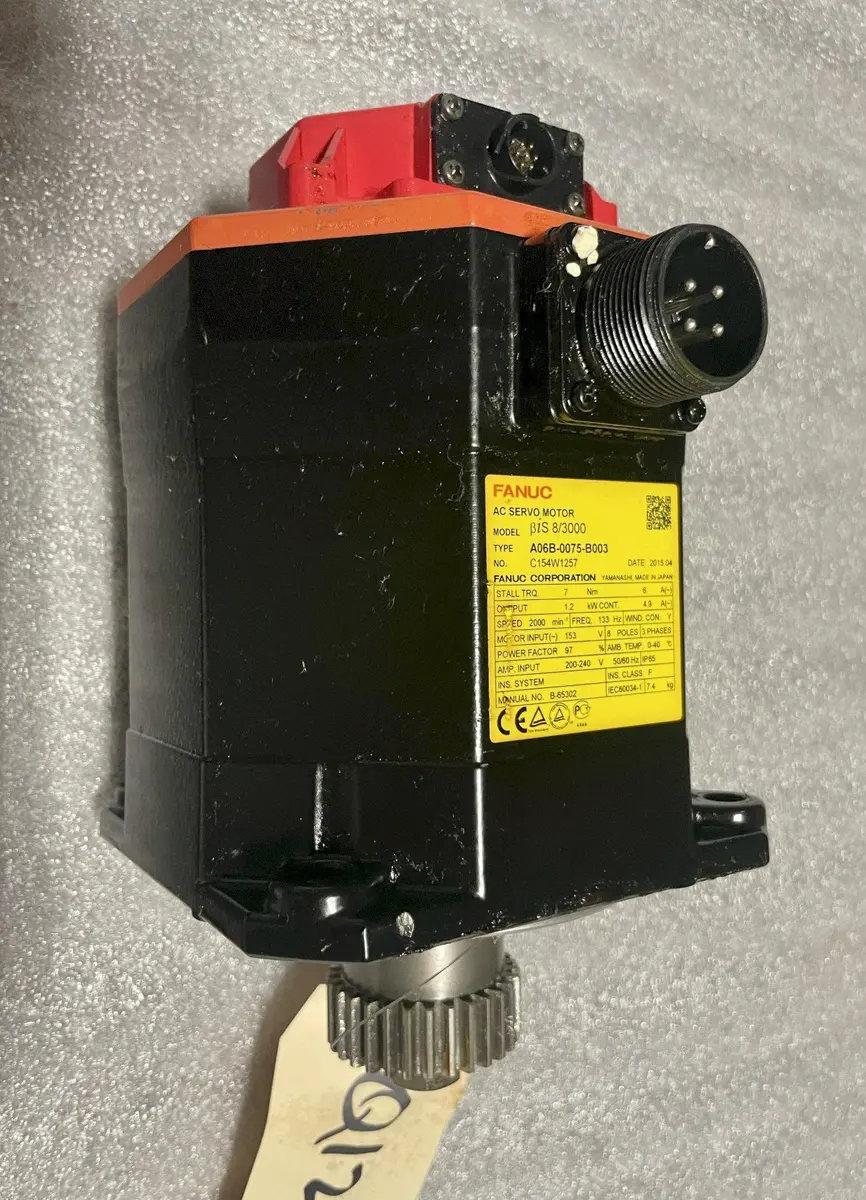 FANUC A06B-0075-B003 AC SERVO MOTOR, Model BiS 8/3000, 240 V, 2000 RPM.