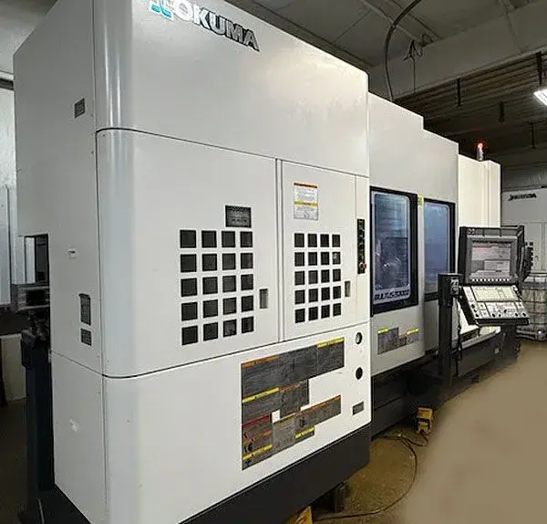 OKUMA MULTUS U3000 2SW/1500 CNC MILL TURN, OSP-P300S-H CNC Control, Collet Chuck on Main & Sub Spindle, 59" Between Centers, 5000 RPM Main Spindle, 25.59" Max Turning Diameter, 4" Bar Capacity, B-Axis Universal Milling Spindle, C-Axis both spindles, Y-Axis, Lower Turret, 80 ATC, Chip Conveyor, High Pressure Coolant System, New 2014.