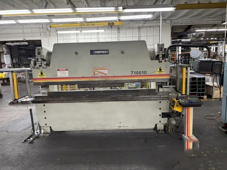 100 Ton x 10' ACCURPRESS HYDRAULIC PRESS BRAKE, Model 710010, Accurpress Control, 2-Axis Back Gauge, ETS Pendant, 10' Bed, 8'6" Between Housings, 8" Stroke, Down Acting-No Pit, New 1997. Tooling Included.